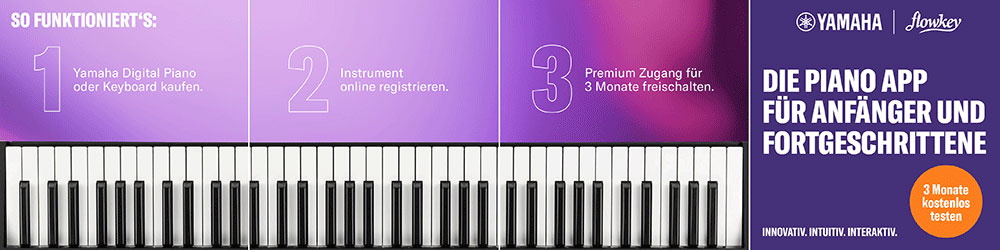 Diese Aktion ist gültig wie oben beschrieben und bei Kauf eines gekennzeichneten Klaviers oder Flügels bis 31.10.2025. Die Gratis Lieferung/In mein Zuhause Lieferung ist gültig für gekennzeichnete Instrumente ebenerdige Zustellung innerhalb Österreichs, Südtirols und Deutschland PLZ 7 und 8. Für Stockwerke, Rest EU, Schweiz und Welt gelten unsere günstigen Pauschalen lt. Versandksoten/Lieferbedingungen, oder senden Sie uns eine Anfrage. Alle Infos zu unserem Home-Service im Falle eines Garantie-Einsatzes finden Sie hier * flowkey online Klavier lernen für 3 Monate bei Kauf eines gekennzeichneten Yamaha Klaviers, Digitalpianos oder Flügels. *36 Tage Geld-Zurück-Garantie für gekennzeichnete Klaviere und Flügel.
