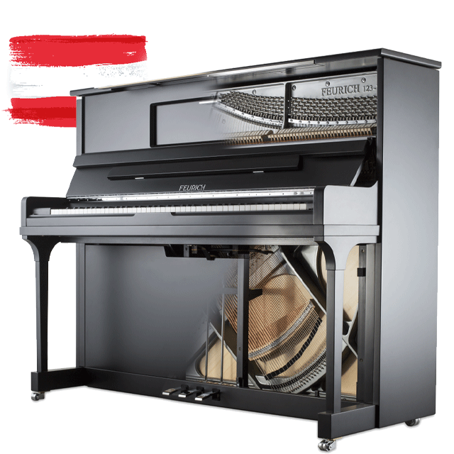Das FEURICH Vienna Modell 123 vereint die Wiener Klavierbautradition mit dem Innovationsgeist des Weltmarktes. Die RENNER Mechanik mit integrierter FEURICH High Speed KAMM Action sorgt für ein perfektes Spielgefühl, das auch anspruchsvolle PianistInnen überzeugt.